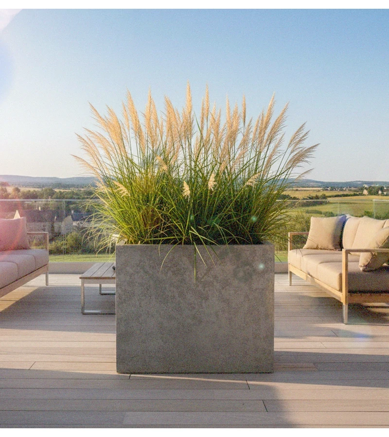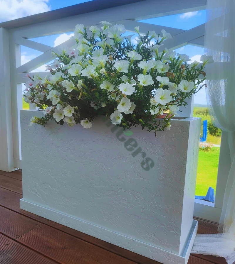 Donica zachwyca nowoczesnym designem, który został osiągnięty dzięki strukturze w imitacji betonu. Ta tekstura dodaje donicy charakteru i elegancji, a jednocześnie pasuje do różnych stylów. Jej minimalistyczna, prostokątna forma pozwala na wszechstronne zastosowanie, od aranżacji w salonie po ustawienie na tarasie czy balkonie.