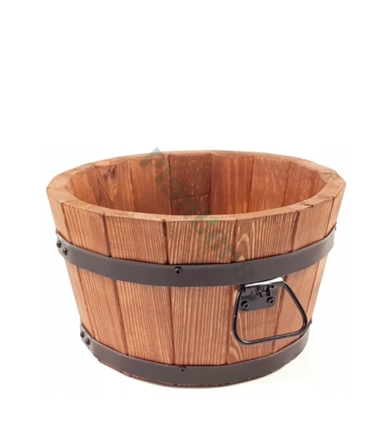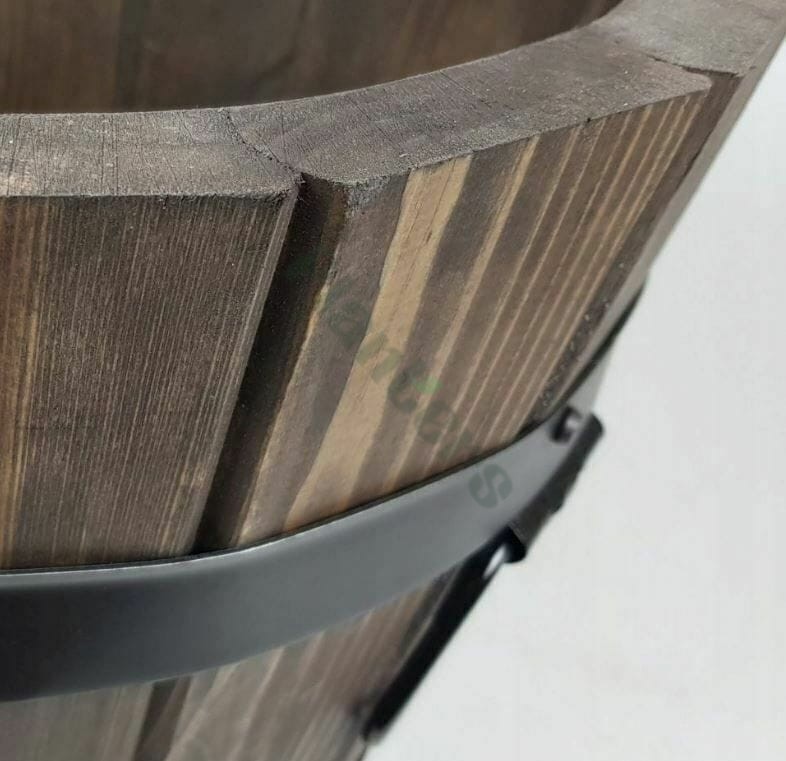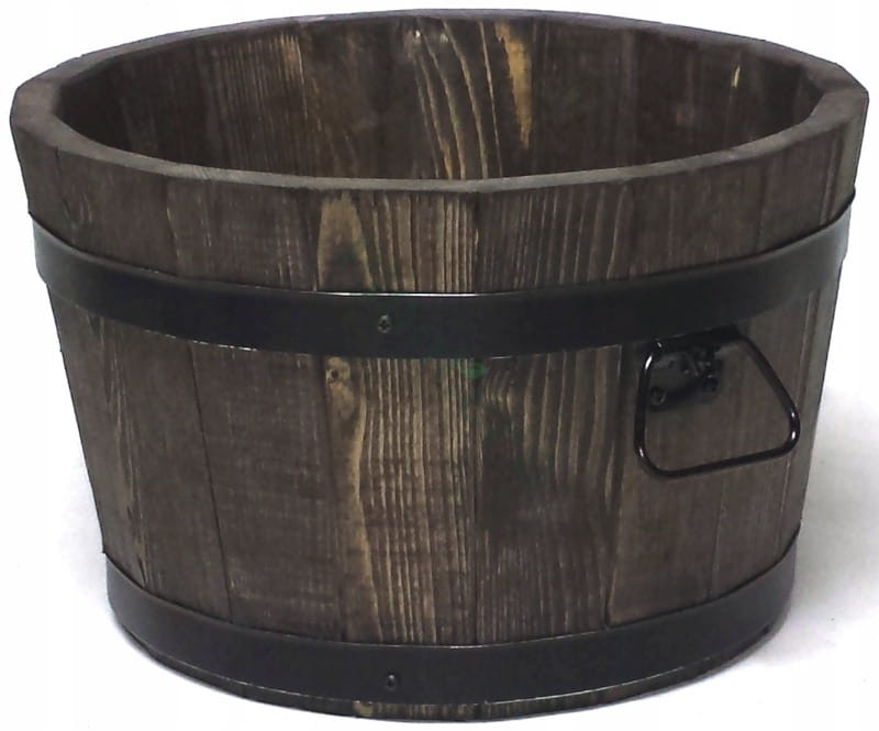 donica posiada otwór drenażowy w grubym dnie z drewna sosnowego