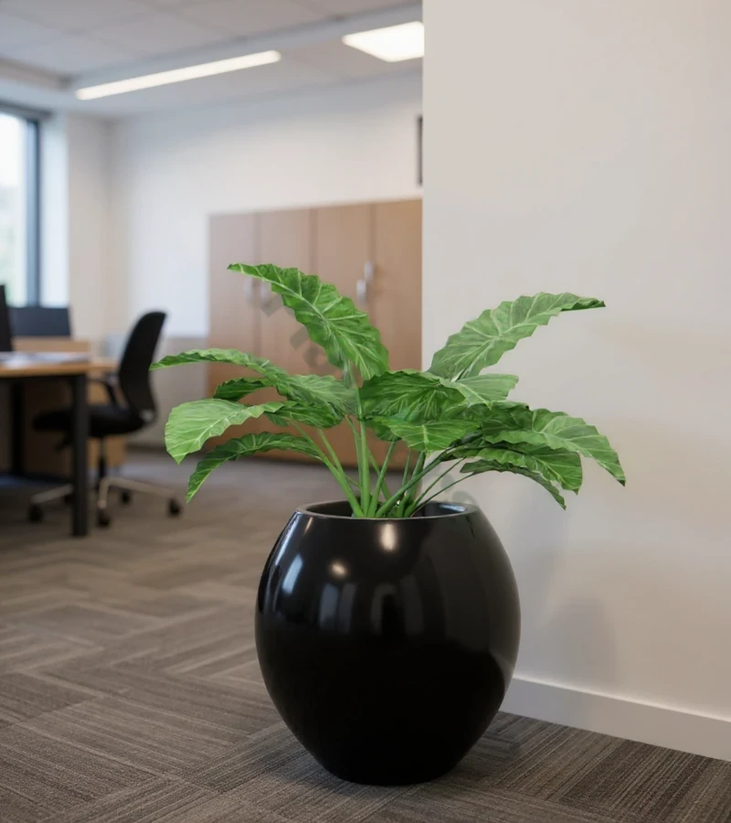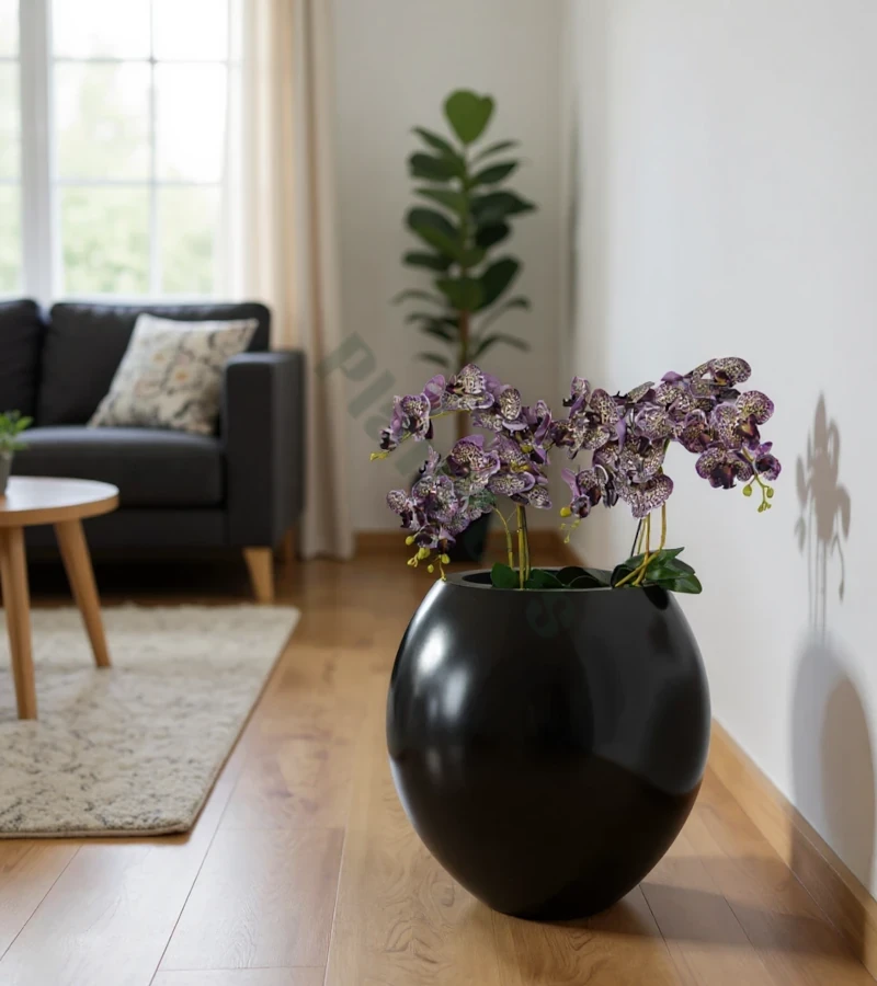 Donica kula 48 cm z włókna szklanego CZARNY POŁYSK | 48x48 cm