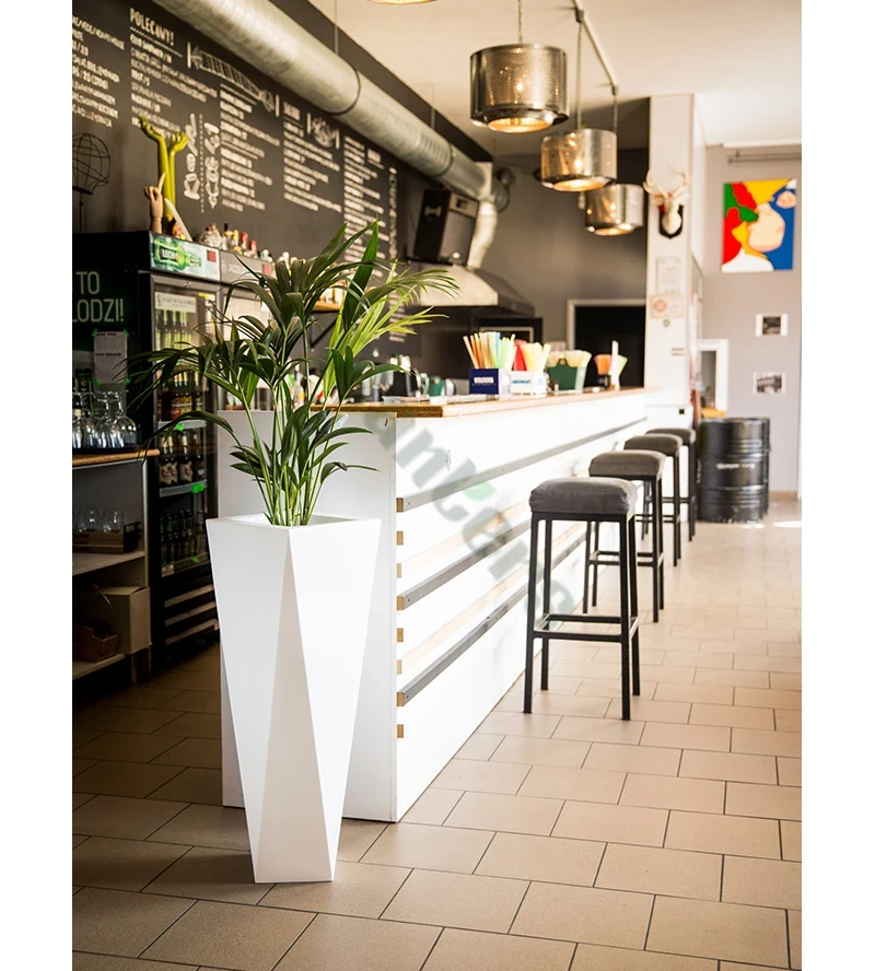 nowoczesny design - smukła sylwetka donicy świetnie sprawdzi się w mniejszych przestrzeniach, takich jak korytarz czy niewielki salon, ponieważ nie zajmie dużo miejsca, a jej nowoczesny design z pewnością nada charakter każdemu pomieszczeniu.