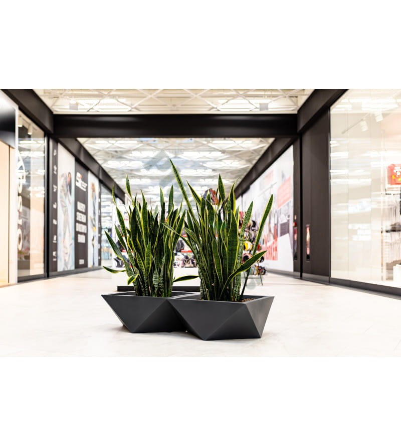Donice geometryczne Vendetta są dostępne w wielu kolorach, co umożliwia dopasowanie ich do każdego pomieszczenia. Są doskonałym uzupełnieniem nowoczesnych wnętrz, którym nadają niepowtarzalnego charakteru. Szczególnie duża donica Vendetta w kolorze czarnym świetnie komponuje się z takimi miejscami jak galerie handlowe, hotele, restauracje, punkty usługowe i drogerie. .