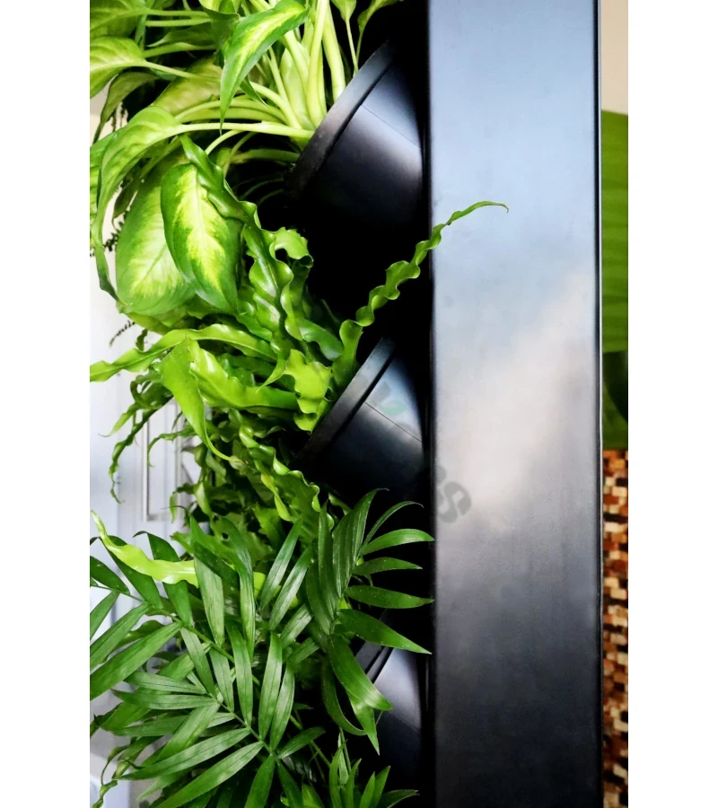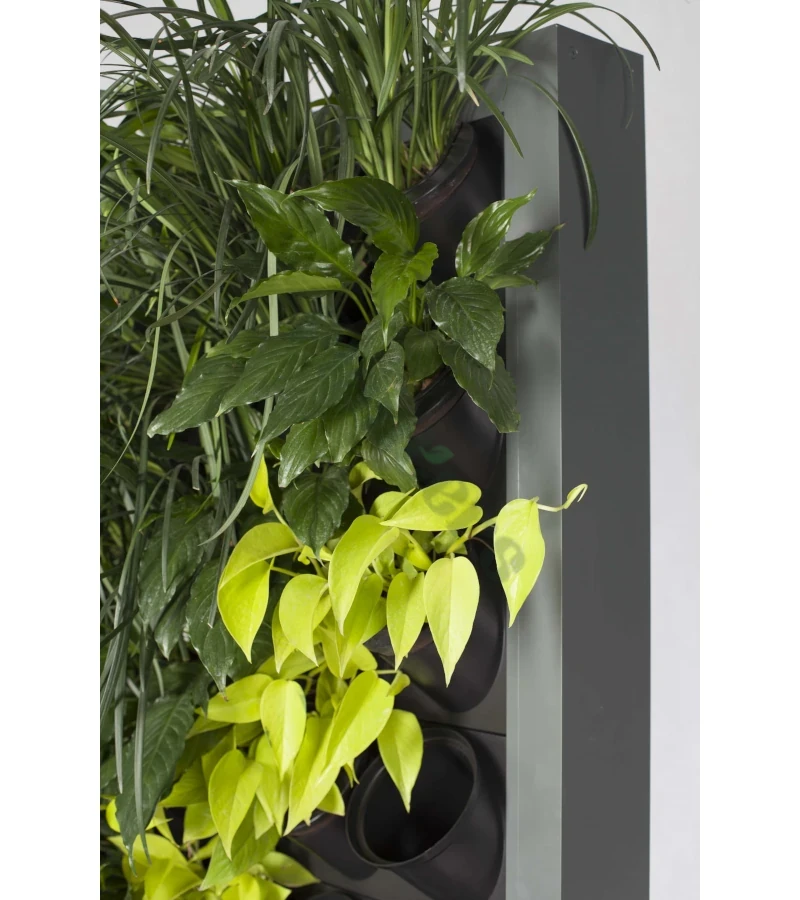 Każdy panel wertykalny składa się z obudowy, 27 lub 36 modułów (lub wersja obustronna panelu: 54 lub 72 modułów) Pixel Garden oraz, 54 lub 72 wyjmowanych doniczek. Ogród wertykalny pozwala na łatwe wyjmowanie roślin, co ułatwia ich pielęgnację, wymianę oraz dowolną aranżację zielonej ściany.