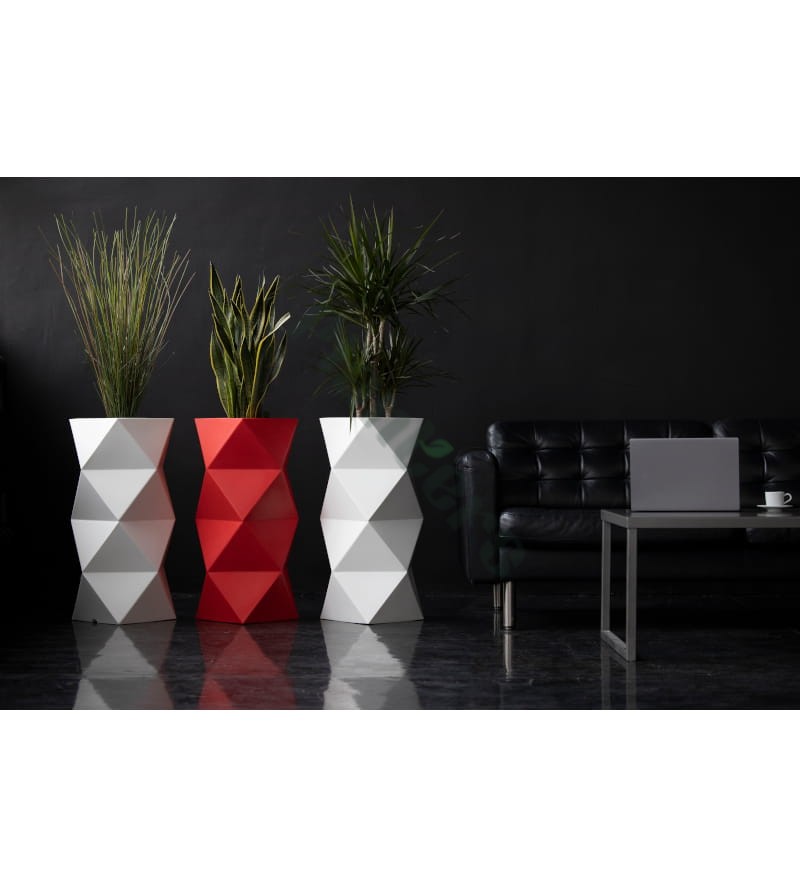 nowoczesny design - oryginalny, geometryczny kształt donicy sprawia, że idealnie wkomponuje się do nowoczesnych wnętrz.