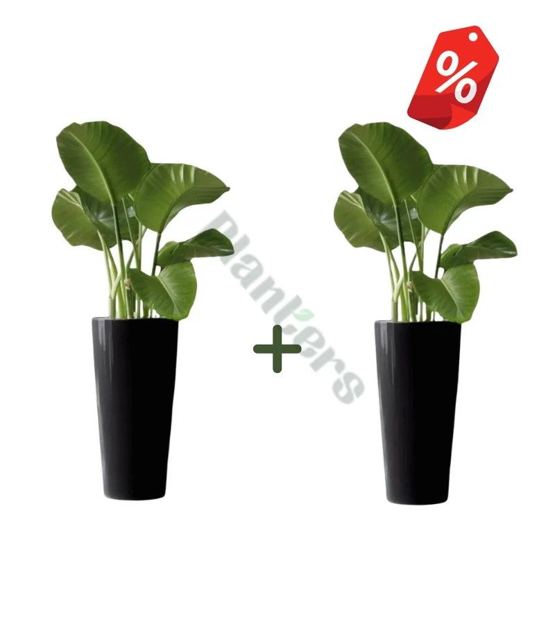 ZESTAW 2 x donica wysoka stożek 73 cm z włókna szklanego CZARNA| 37x73 cm