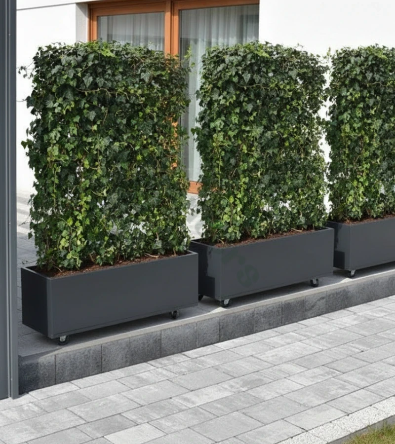 Modułowa konstrukcja pozwala na tworzenie dowolnych konfiguracji - od prostych przegród po skomplikowane labirynty ogrodowe. Zielone ekrany można łączyć, układać pod kątem, tworzyć zakręty i łuki. To Ty decydujesz o kształcie swojej zielonej przestrzeni.