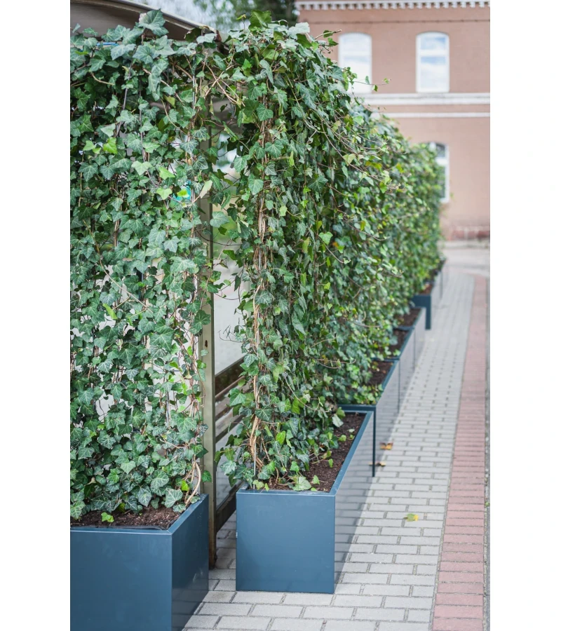 Panel z bluszczu to znacznie więcej niż dekoracja. Skutecznie izoluje od hałasu ulicznego, chroni przed wiatrem i pyłami. Tworzy naturalny ekran zapewniający intymność bez wrażenia zamknięcia. W upalne dni działa jak naturalna klimatyzacja, schładzając powietrze poprzez proces transpiracji.