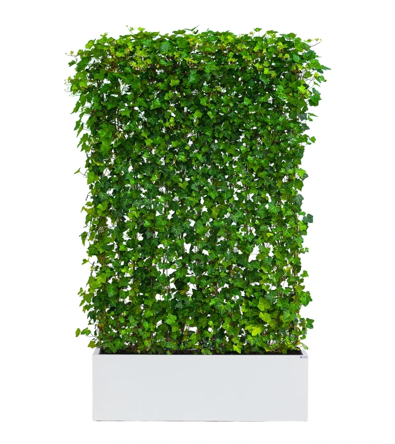 Zielony ekran/panel z bluszczu w donicy BIAŁY | 130x40 H:220 cm