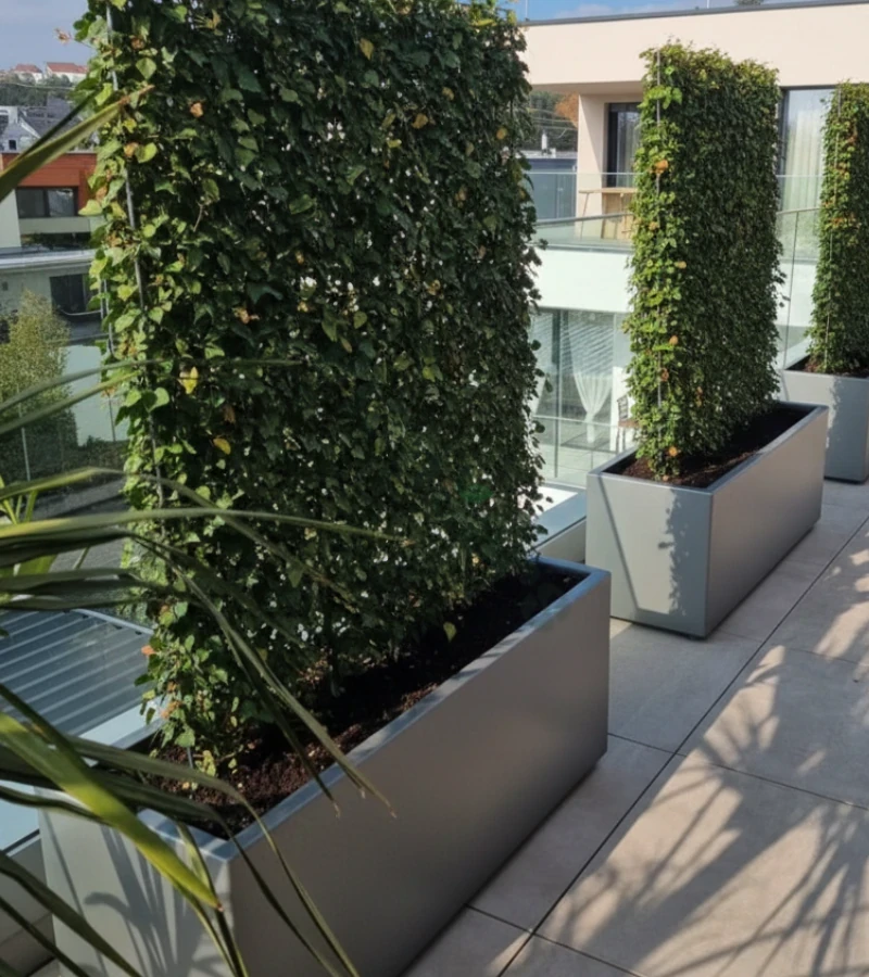 Otrzymujesz w pełni wyrośnięte, gęste panele gotowe do montażu. Żadnego sadzenia, podlewania młodych sadzonek czy niepewności, czy rośliny się przyjmą. W ciągu jednego popołudnia możesz cieszyć się dojrzałym, bujnym żywopłotem, który wygląda jakby rósł w tym miejscu od lat.
